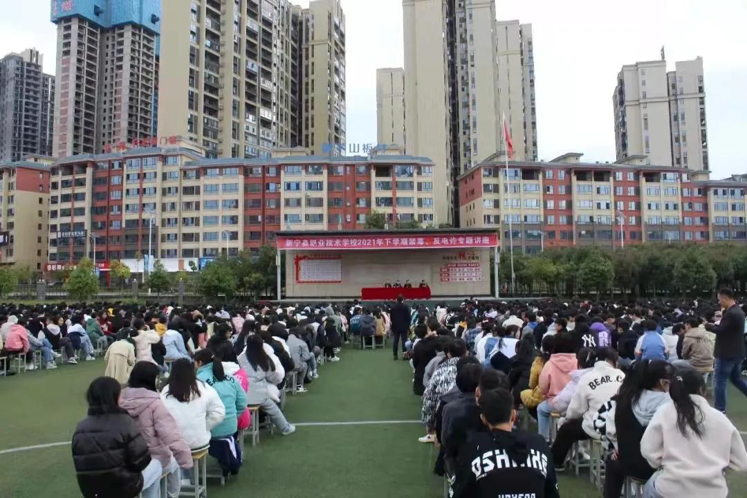 新华卫视讯(编辑张成云、通讯员林立江、黄亮、唐慧丽)为深入推进校园禁毒预防与反电信诈骗宣传教育,切实提高学生群体识毒防毒拒毒,增强防骗识骗能力,新宁职业技术学校于11月9日上午在操场举行了禁毒、反诈骗专题讲座,全校师生参与,工会主席林立江主持。
