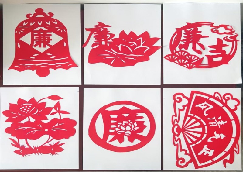 活动中,党员教师谭宗国带领大家进行剪纸创作,党员教师们按照各自喜好选择了跟廉洁相关的剪纸花样,大家一起剪“廉”字、刻“莲”花,以巧手细剪,互相分享心得。经过大家的精细雕琢,一幅幅立意深远的廉洁剪纸作品呈现在眼前。