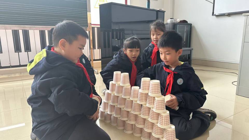 同时,各年级的比赛也在有条不紊地举行。回形针水上漂、纸杯高塔、纸牌高塔、小猪赛跑、保护鸡蛋、制作塔台是不同年级的比赛项目,各班根据班级推荐,派代表参加年级比赛。大家的脸上写满了兴奋,迫不及待展示自己作品的实力。
