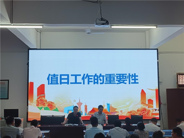 会议由政工处邱璐璐主任主持,校长及分管安全的副校长出席会议并作重要讲话。会上,分管校长王校长结合近期校园安全形势,强调了值日工作的重要性:“每位值日教师都是校园安全的‘前哨兵’,你们的每一次巡查、每一句提醒,都在为孩子们撑起‘保护伞’。”这一比喻瞬间拉近了与会者的距离,也让责任感更加具象化。