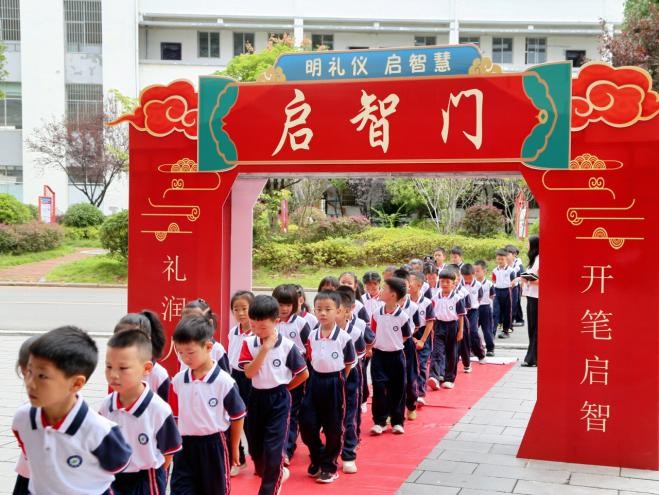 (通讯员:魏丽华 符雨琪 刘珊秀)9月12日上午,湖南龙山县皇仓华鑫小学为一年级新生隆重举行“开笔启智·礼润人生”开笔礼仪式。此次活动以传统文化为底色,通过庄严而温馨的仪式,引导孩子们迈出求学之路的第一步。
