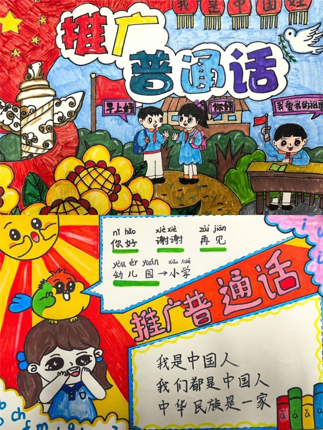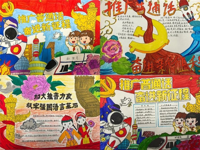 三四年级的同学们化身“推普小使者”,精心制作手抄报。版面设计新颖别致,内容丰富多样:有的介绍普通话的起源与意义,有的分享推广普通话的重要性,还有的绘制推普标语。一张张图文并茂的手抄报,既是知识的载体,更是同学们传递推普理念的小小阵地,让“说好普通话”的意识深入人心。
