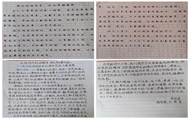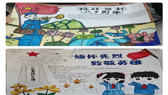 思政大课让学生读懂抗战历史,也将“众志成城”精神与爱国信念播撒心间。课程结束后,我校通过儿童绘画、小视频、手抄报、观后感比赛等形式,引导学生传承抗战精神,牢记幸福源于奋斗,努力成长为担当民族复兴大任的时代新人。