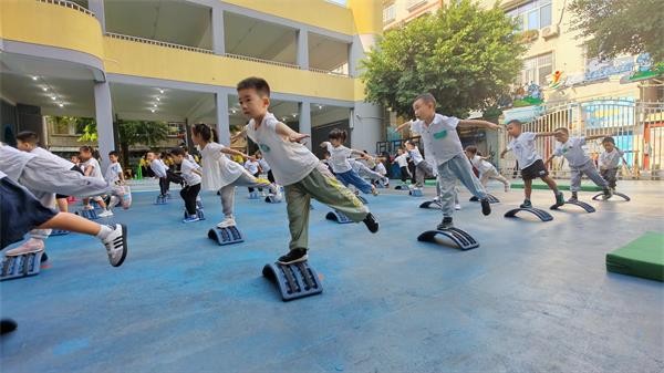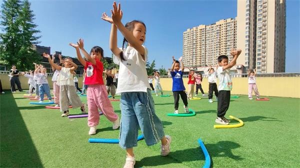 随着活泼动感的音乐响起,各年龄段的孩子们展现出独具特色的早操表现,用童真的动作和灿烂的笑容点亮了整个校园。