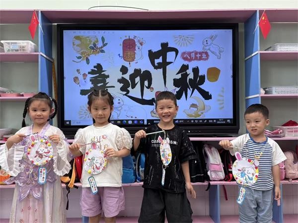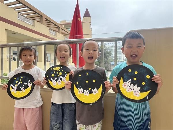 有的孩子创作了“玉兔”主题作品,或用颜料拓印出色彩斑斓的玉兔剪影,或用黏土塑造出圆月上俏皮的玉兔形象;孩子们拿着自己的作品,脸上洋溢着自豪与喜悦的笑容,每一件作品都承载着他们对中秋的独特理解。