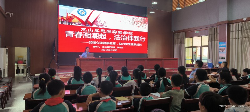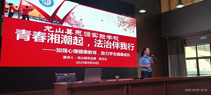 (通讯员:田奎 杨梦梅)为进一步增强学生的法治意识,筑牢未成年人权益保护防线,9月30日,龙山县思源实验学校特邀龙山县司法局工作人员走进多功能厅,为200余名师生带来一场生动有趣的“法治伴我行”主题宣讲活动,让法治种子在孩子们心中生根发芽,助力学生健康成长。