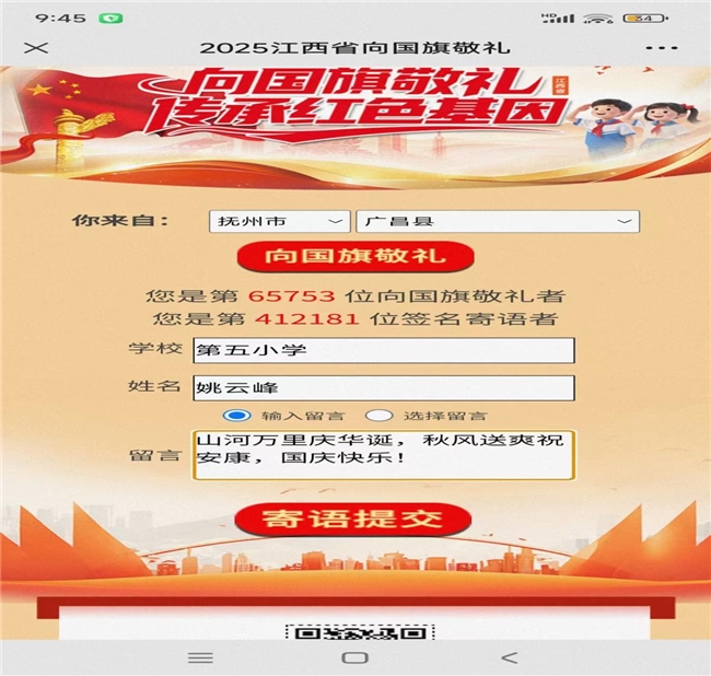 与此同时,2025年“向国旗敬礼”网上签名寄语活动也火热开展。队员们纷纷通过网络平台,向国旗敬礼,表达对祖国的深深祝福。