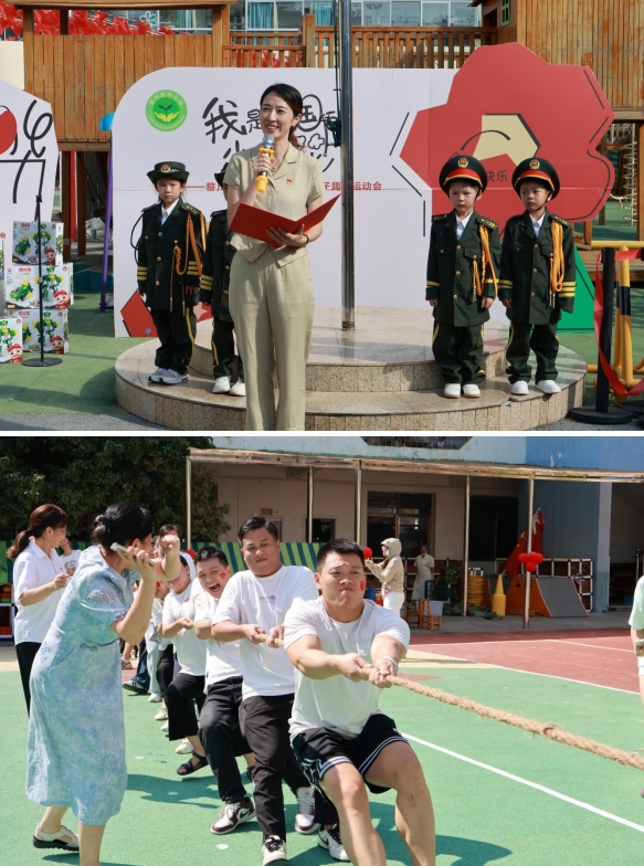 小班以“我是小红花”为主题,举办了红色亲子运动会。孩子和家长们化身“小小运动员”,在“车轮滚滚”“扛大旗”等趣味项目中默契配合,在奔跑与欢笑中感受团结的力量,体验运动的快乐。