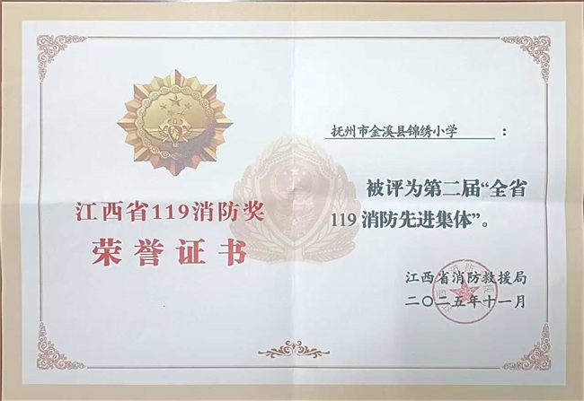 11月4日,江西省“消防宣传月”启动仪式在南昌市水天消防广场举行,现场对第二届“全省119消防先进集体和先进个人”进行表彰,金溪县锦绣小学凭借在消防安全领域的突出表现,成功获评第二届“全省119消防先进集体”殊荣。