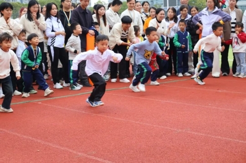 竞技时刻同样精彩!百米冲刺赛道上,小选手们像小猎豹般冲出起跑线,爸妈在场边挥舞双手助威:“加油!加油!” 听到鼓励,孩子们跑得更带劲,冲向终点的每一步都是成长的印记;果蔬争夺战里,爸妈瞬间变身 “抢菜能手”,哨声一响便冲向 “果蔬” 堆,抱起就跑,欢呼声、呐喊声此起彼伏,彻底燃爆操场。
