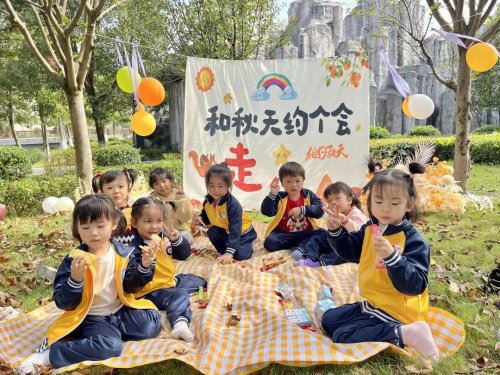 在科学小实验告一段落后,草地上的彩色垫子瞬间变成“欢乐补给站”,孩子们围坐成一个个小圈圈,一场童趣满格的“零食共享派对”热热闹闹开场啦!