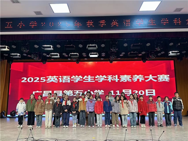为点燃学生英语学习热情,检验学科核心素养掌握情况,11月20日,广昌县第五小学一楼报告厅热闹非凡——2025年秋英语学科素养大赛在此开展。 本次活动以“实践课堂、素养提升”为主题,通过多样化的比赛形式,展现了学生们的英语综合应用能力和创新思维。活动分为低段现场表演和高段书面及展示类项目,吸引了全校79名学生参与,现场气氛热烈。