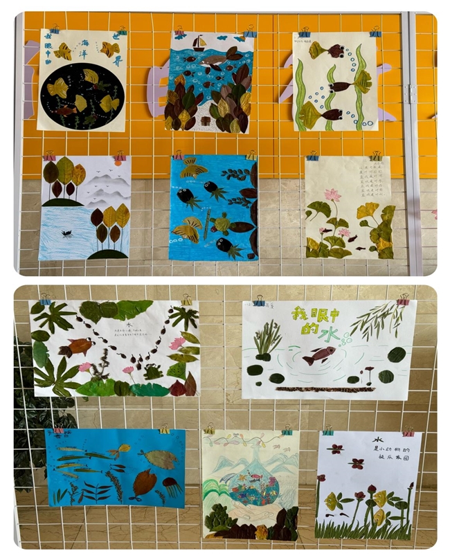 一年级学生以树叶贴画形式绘制我眼中的水