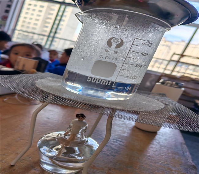 云与雨的形成:通过加的烧杯中的水产生水蒸气,遇冷(放冰块的盘子)凝结成“云”和“雨滴”,直观理解水的循环。