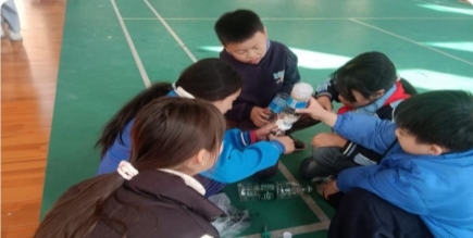 三四年级学生制作“海洋瓶”