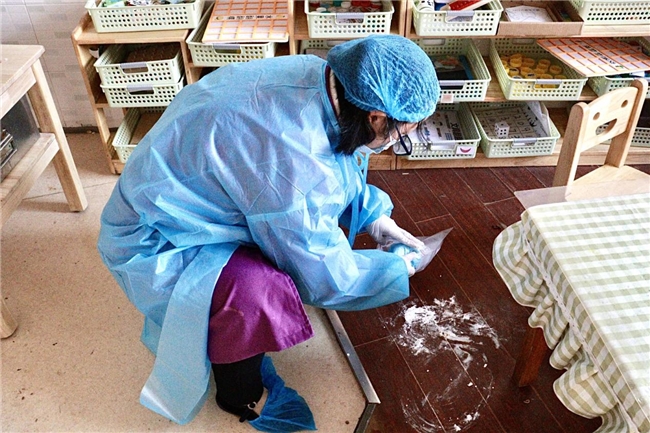保育老师立即开窗通风,规范处理呕吐物并消毒现场。保健医生与班级教师将不适幼儿转移至隔离室,进行情绪安抚与健康观察,同时模拟拨打120,清晰说明相关信息。