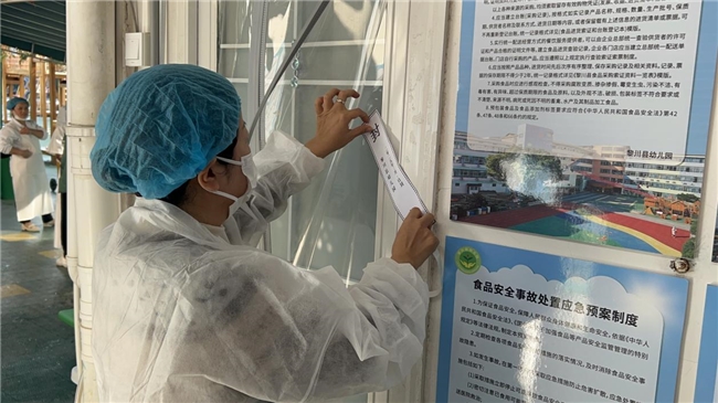 食堂安全员立即封存留样食品、相关餐具及原料,保护食堂现场。幼儿园同步按程序向教育局、市场监管及卫生疾控部门进行模拟报告。