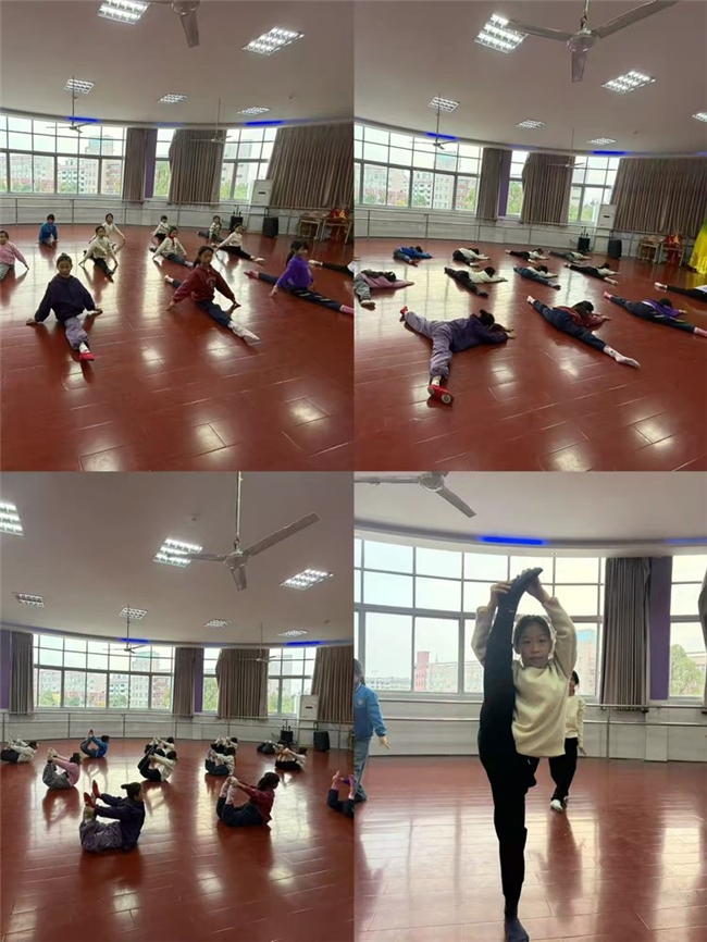 国风舞者:同学在舞蹈房翩翩起舞,刘星雨、邱诗艺老师指导的两支队伍风格各异,低年级同学的舞蹈活泼可爱,中高年级同学的舞姿舒展优美,用肢体语言演绎着美好。