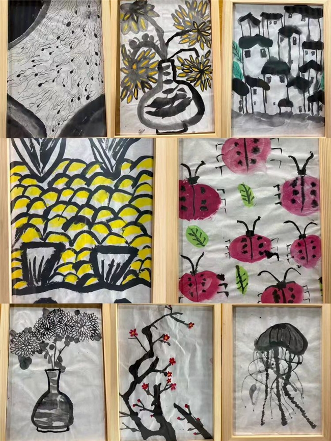 童心绘墨坊:同学在挥毫创作,山水、花鸟在宣纸上徐徐展开,笔墨间尽显传统国画的韵味,孩子们用画笔勾勒对美的理解。
