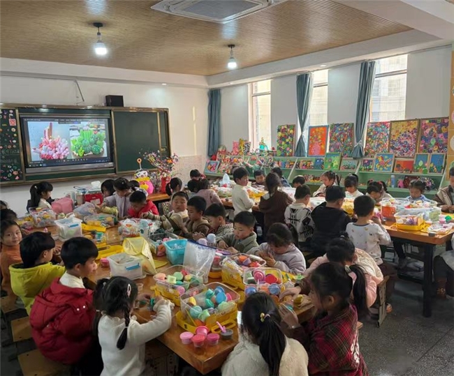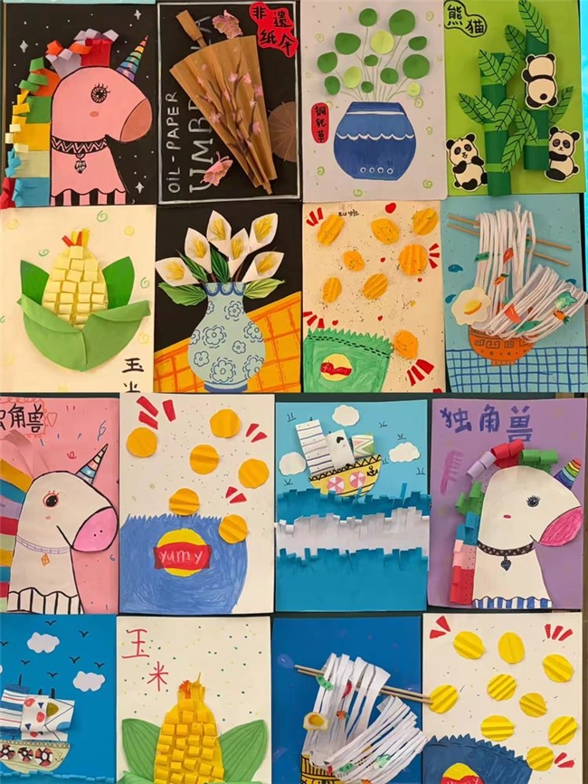纸艺创意社:同学教室展示创作,剪、刻、印的工序中,普通的吹塑纸变成了充满创意的版画作品,独特的纹理与色彩让人赞叹。