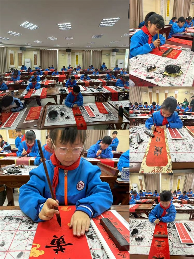 童心书法社:同学在书法室展纸挥毫,楷书端庄工整,行书飘逸流畅,横平竖直间不仅是汉字的书写,更是对传统文化的传承。