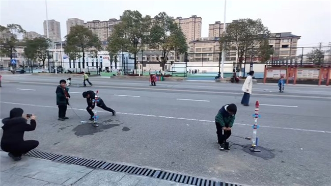 创意发明社:同学们火箭发射表演堪称全场焦点!同学在指导老师潘丹、周可夫的带领下,将亲手制作的水火箭搬上舞台,用一场充满趣味与科学的发射实验,点燃了全场对航天探索的热情。