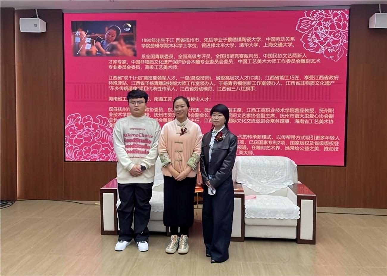 于杨青女士16岁从事艺术雕刻,通过不断摸索,她探索出更接近年轻一代的传承新模式,以传帮带方式吸引更多年轻人传承非物质文化遗产。其作品荣获国家级,省级金银铜奖36项,已获国家专利2项,国家版权及省级版权登记共计316项,多次接受中央广播电视总台等国家媒体专题报道。在雕刻艺术界,她常绘公益之美,推动技艺薪火相传,是首位在博鳌亚洲论坛会址举办艺术个展的工美大师。