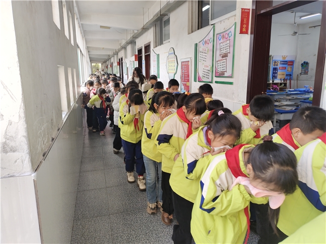 上午9时,随着警报声响起,演练正式开始。各班学生在老师的指挥下,用手捂住口鼻,弯腰低姿、快速有序地沿着预定疏散路线撤离,前往指定安全区域集合。整个过程紧张有序、迅速规范,无拥挤、无掉队,圆满完成疏散任务。