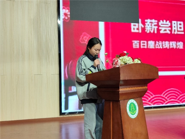 随后,九年级(2)班学生代表龚味可上台发言。她以青春的名义,表达了全体初三学子全力以赴、决胜中考的信心与决心,号召同学们不负学校重托,不负家长期望,不负青春理想。