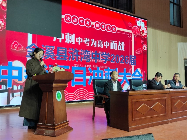教师代表黄家惠随后发言。她深情回顾了与同学们朝夕相处的点点滴滴,并代表全体九年级教师郑重承诺:将在最后的一百天里与学生风雨同舟,倾尽全力做好教学辅导与心理疏导工作,做学生最坚强的后盾。紧接着,各班学生集体宣誓,以铿锵誓言表达全力以赴、决胜中考的坚定决心。