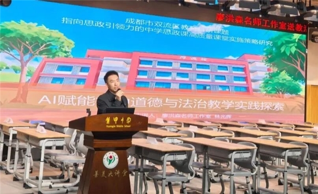 林光辉老师以《AI赋能道德与法治教学》破题开路——用AI诊断学情,以技术推送资源;让智慧照亮课堂,用创新打破边界,为跨域教学插上数字化翅膀。