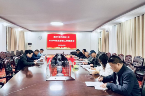 4月7日下午,河南省漯河四高召开2026年依法治教工作推进会。副校长丁永刚、闫春雨出席会议,各处室、各部门负责人参加会议。