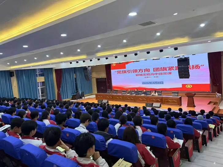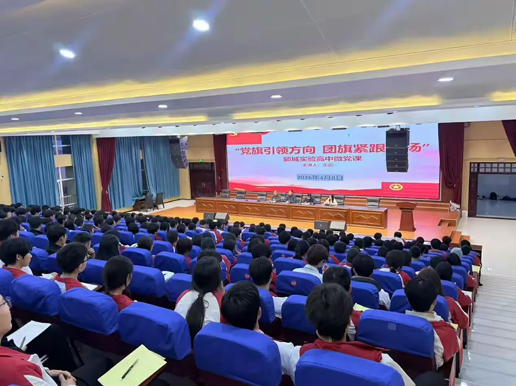 春风化雨润桃李,党旗飘扬映青春。为落实立德树人根本任务,强化党建带团建工作,引导青年学子坚定理想信念、传承红色基因,4月8日晚,河南漯河郾城实验高中在实训楼五楼会议室举行“党旗引领团旗红,薪火相传共成长”党建带团建主题活动暨2026年上半年入团积极分子培训大会。学校党总支书记王雷、团委书记王付仓、团委副书记张书魁、郭琳及全体入团积极分子参加活动。