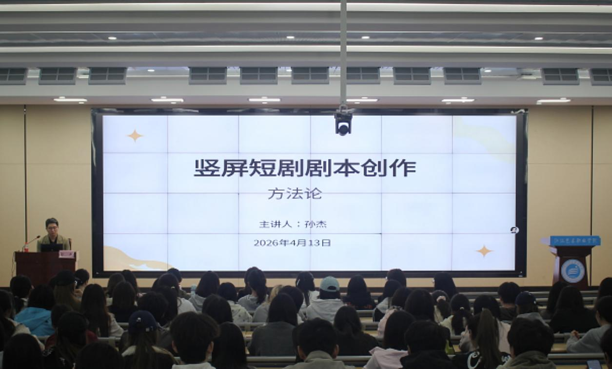 4 月 13 日下午,江汉艺术职业学院在 5 号报告厅举办短剧剧本创作方法论专题讲座。知名导演、编剧孙杰应邀主讲,师生代表参加学习。本次讲座专为助力师生参与 “农发杯”“执笔筑梦,剧映芳华” 短剧剧本创作大赛举办。