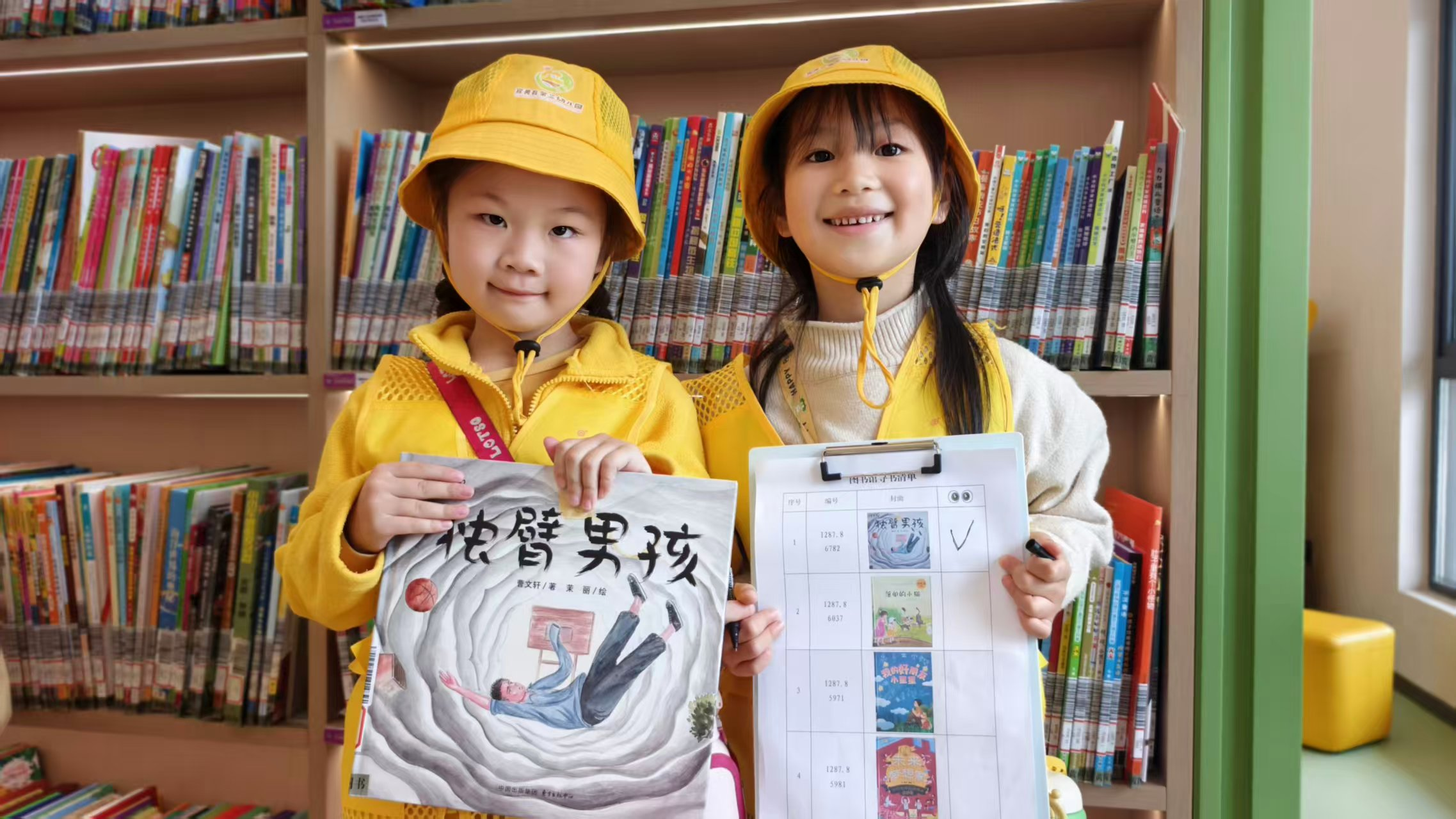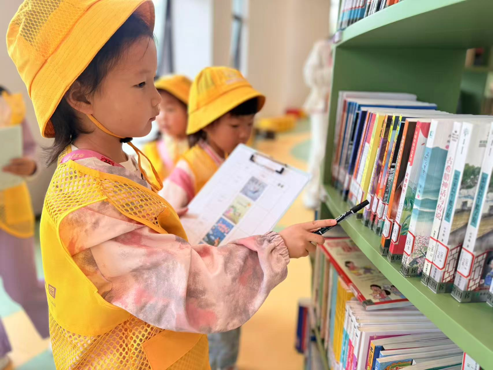 为锻炼幼儿的观察与协作能力,活动设置了“寻书大挑战”趣味环节。教师为孩子们分发寻书任务清单,大家根据清单上的图书封面、编号,在对应区域自主寻找指定书籍。混龄班的大孩子主动帮助小孩子,互帮互助共同完成挑战,在实践中掌握了找书技巧。同时,工作人员现场演示电子借还书流程,孩子们分组体验操作,真切感受智能化借阅的便捷。